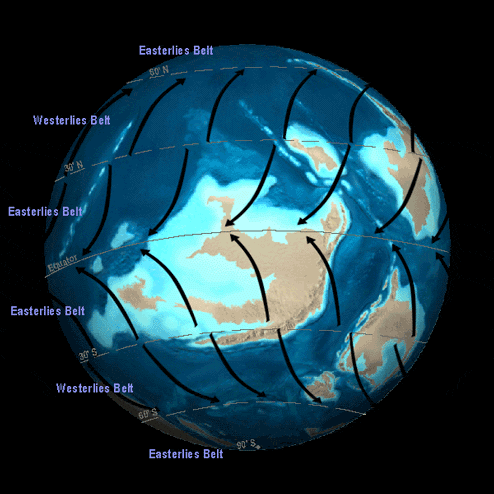 Nếu Bé đang ở xích đạo, hiệu ứng Coriolis gần như bằng 0 – nghĩa là gió ở đây gần như không bị lệch hướng!