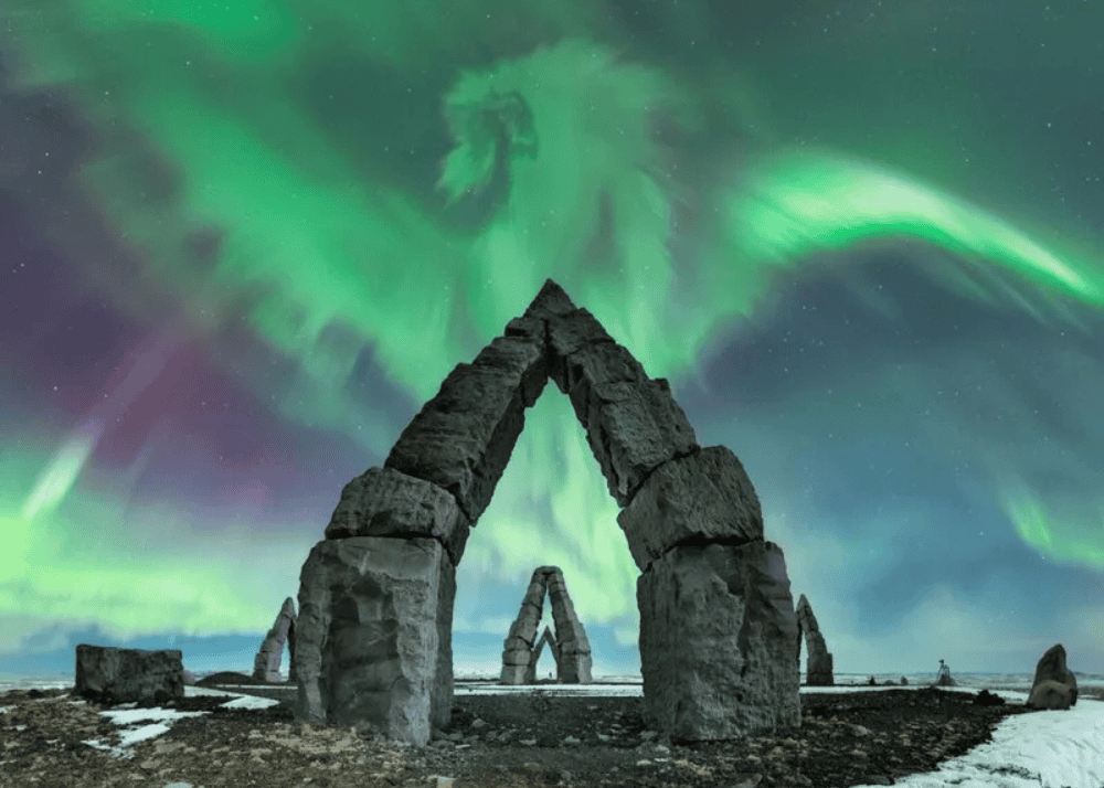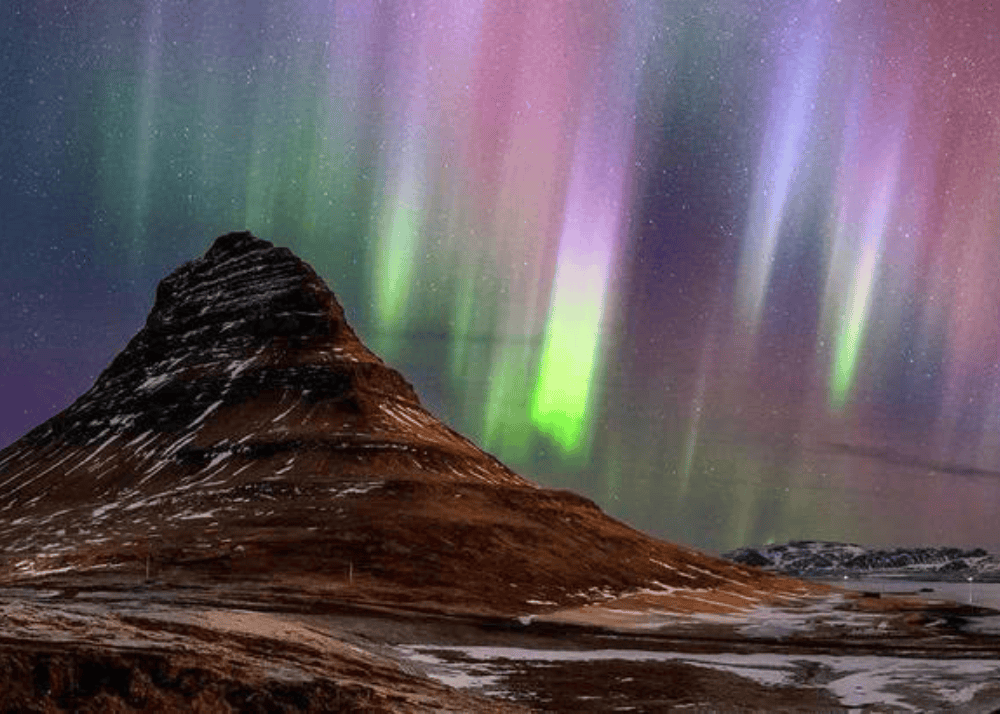 The colors of the aurora depend on the type of gas in the atmosphere and the altitude where the energetic particles collide. When interacting with oxygen, the aurora often appears green or red, while collisions with nitrogen create purple, pink, or blue light. This combination makes the night sky become mystical and radiant, like a painting created by nature itself.