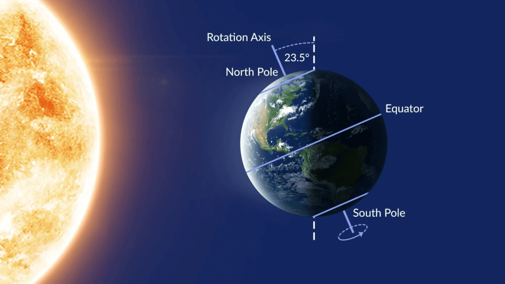 Nếu trục Trái Đất không nghiêng 23,5°, Bé sẽ không bao giờ thấy mùa hè, mùa đông hay hiện tượng ngày dài đêm ngắn nữa. Mỗi ngày sẽ dài gần như bằng nhau suốt cả năm – khá nhàm chán đúng không nào?